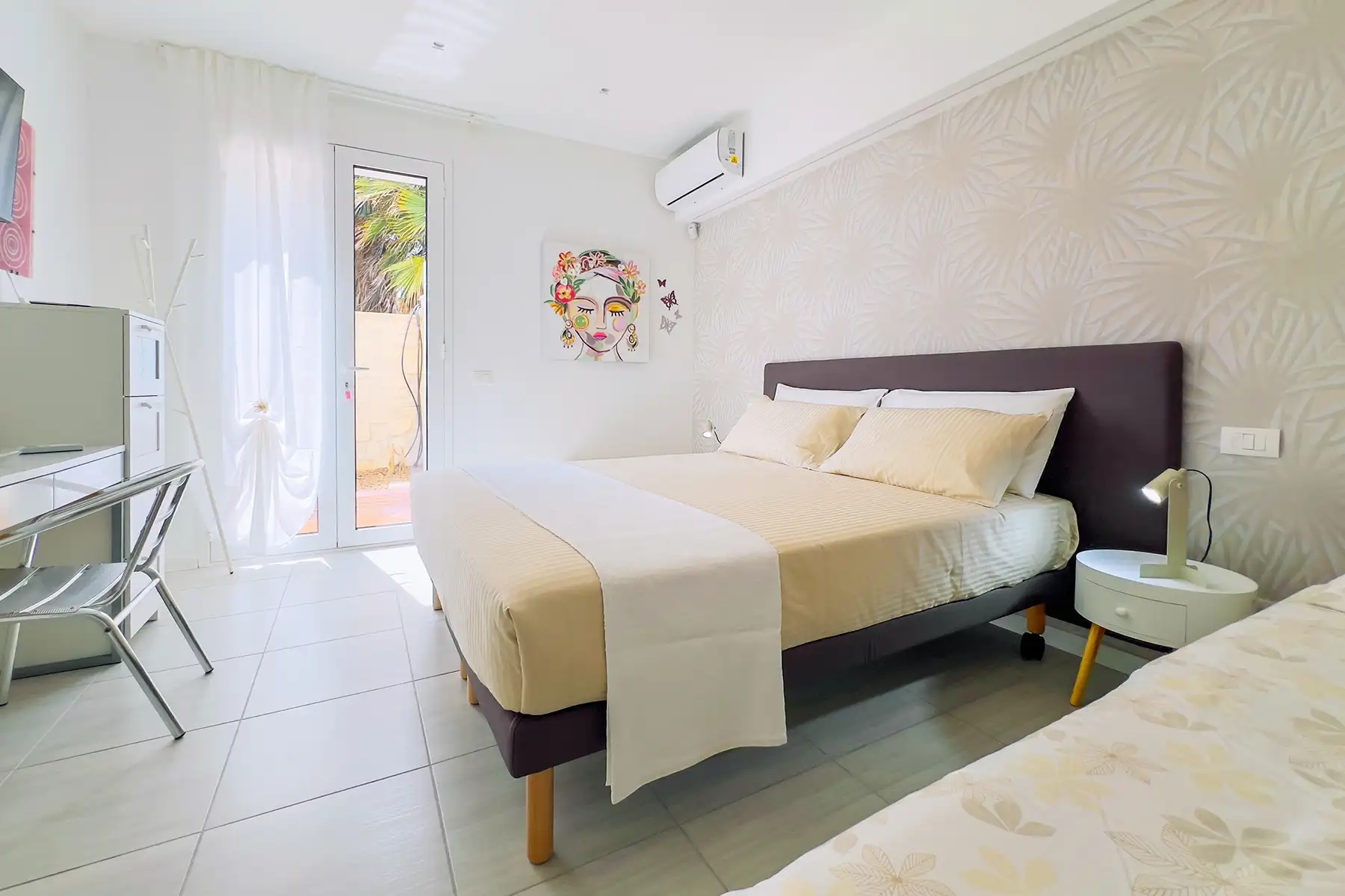 Il sole che scivola dietro l’orizzonte e dipinge la stanza di luce dorata. Calda e avvolgente, questa camera è un invito alla pace, tra sabbia, giardino e tramonti indimenticabili.