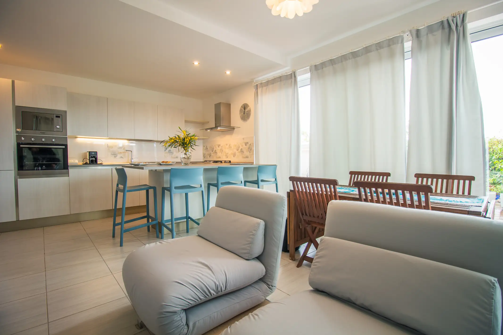 Il chiarore lunare che riflette sul mare al tramonto. Questo appartamento, con affaccio a est-sud-est, unisce comfort e intimità in uno spazio privato, perfetto per chi cerca un ritmo lento e sereno.