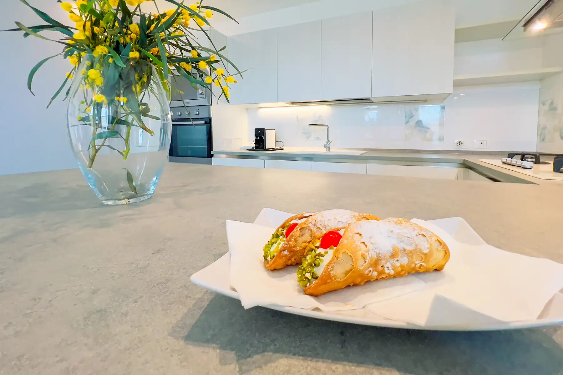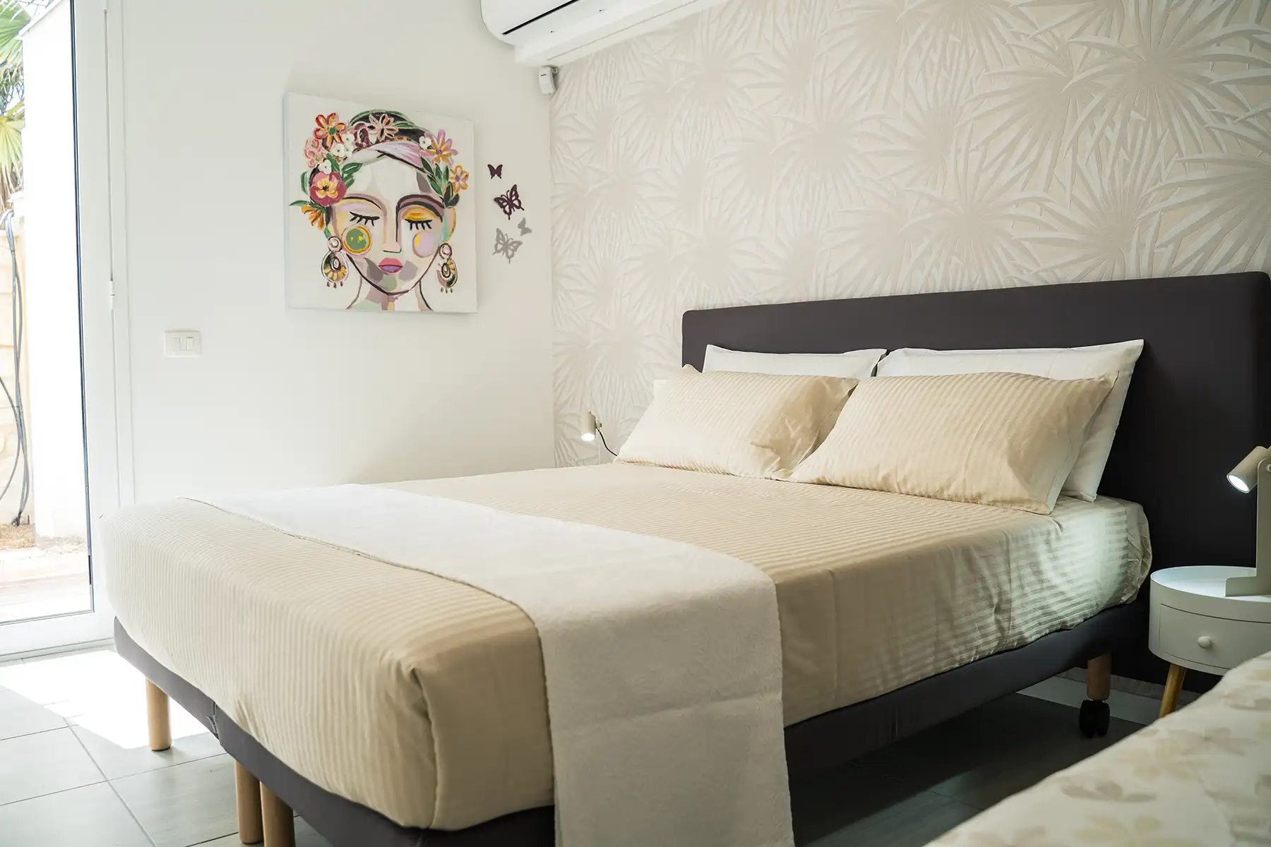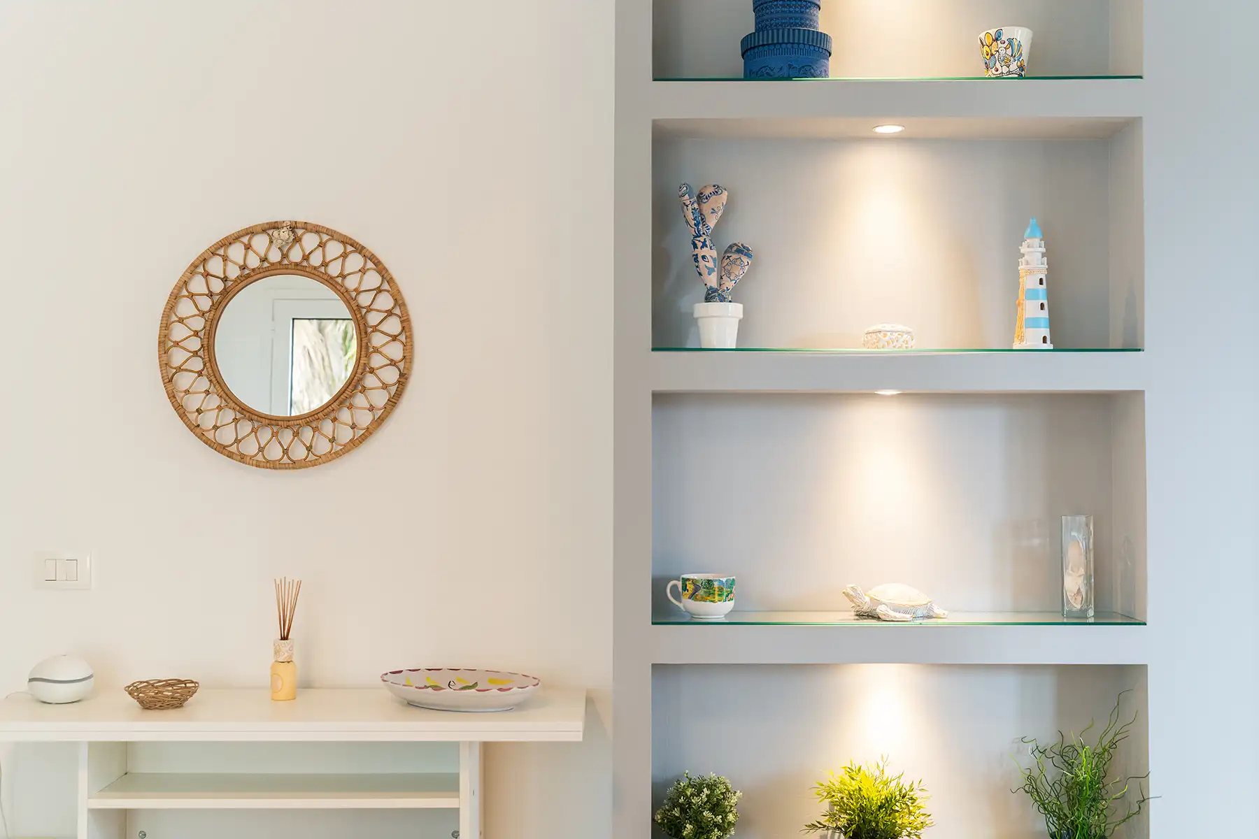 Luna di Mare è un appartamento indipendente rivolto a est-sudest, dove le prime luci dell’alba filtrano tra palme e fichi d’India, accarezzando ogni risveglio.