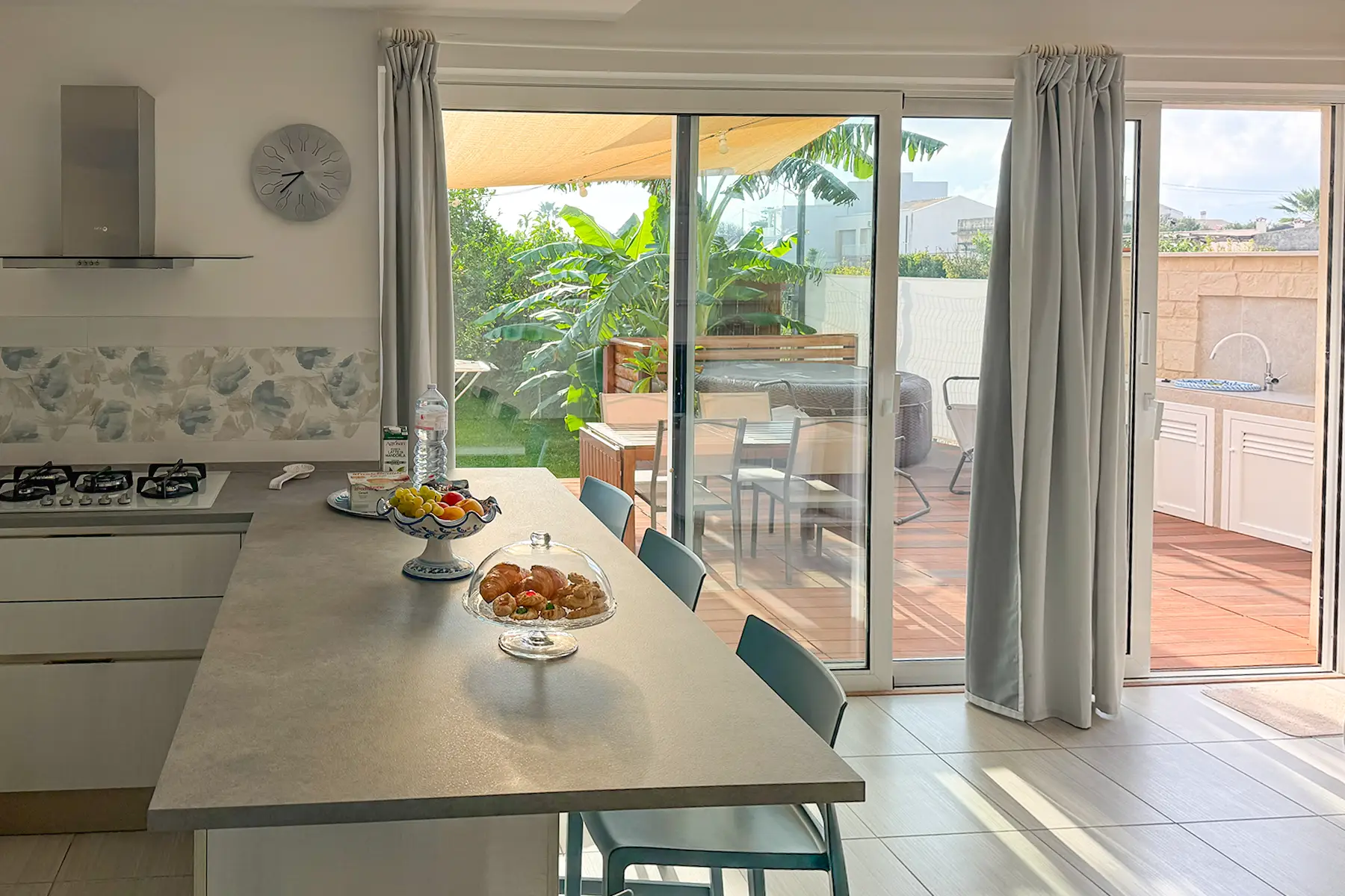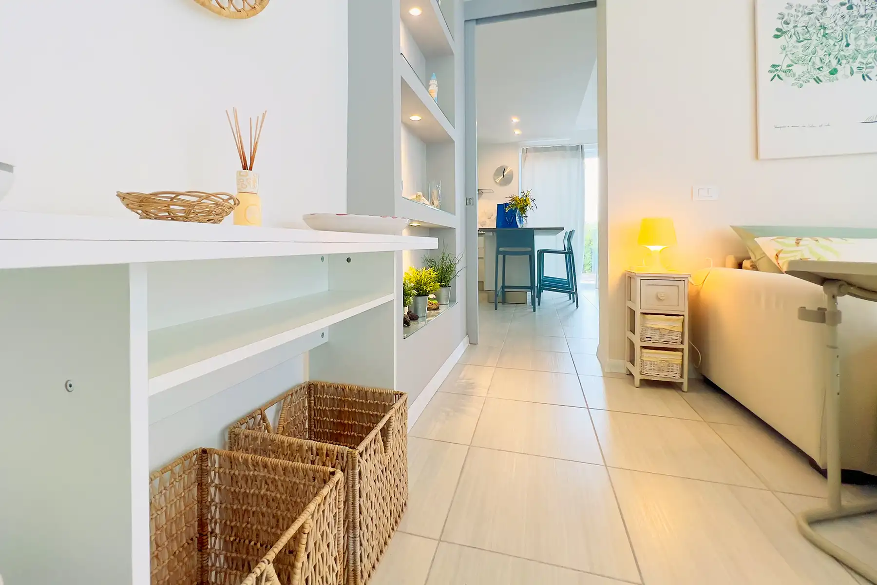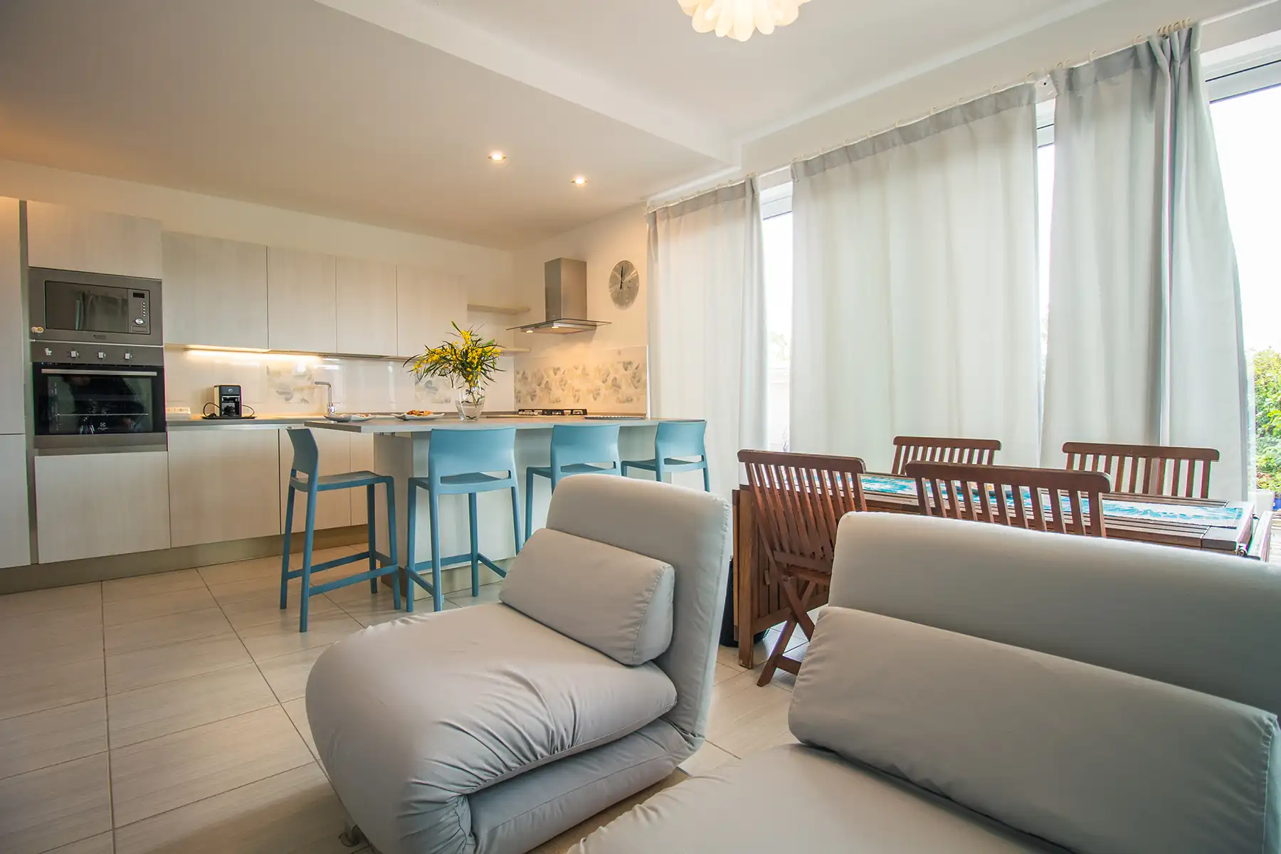 Tutto l’appartamento è pervaso dalla luce naturale e dalla brezza del giardino, creando un ambiente fresco, rilassante e perfetto per ogni momento della giornata.