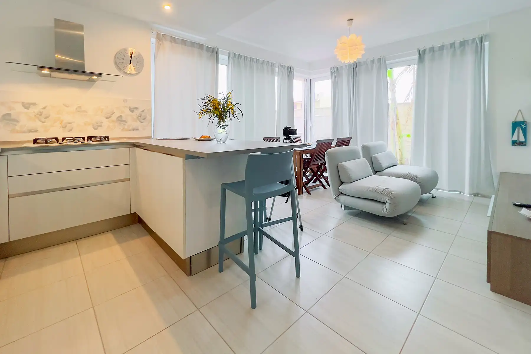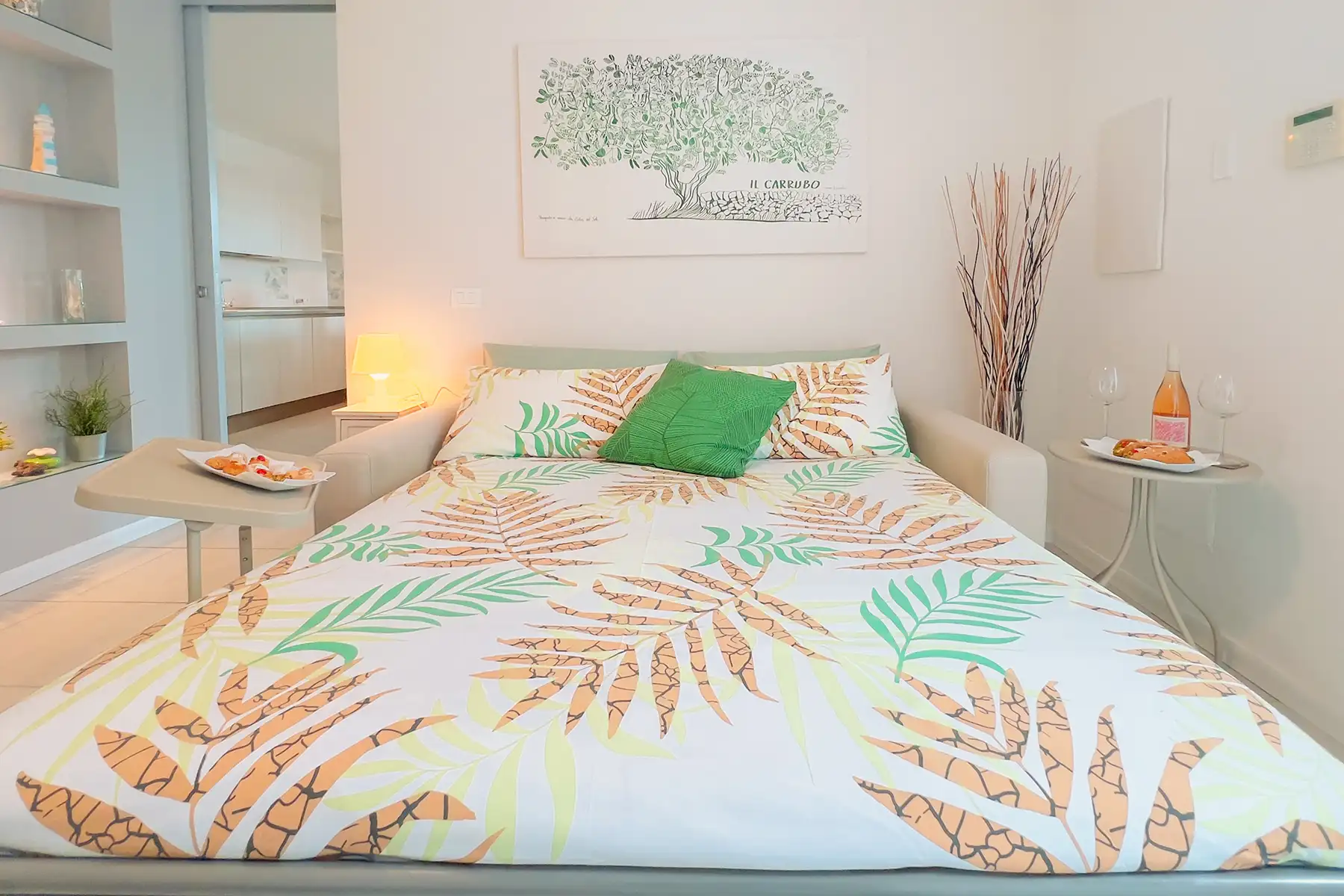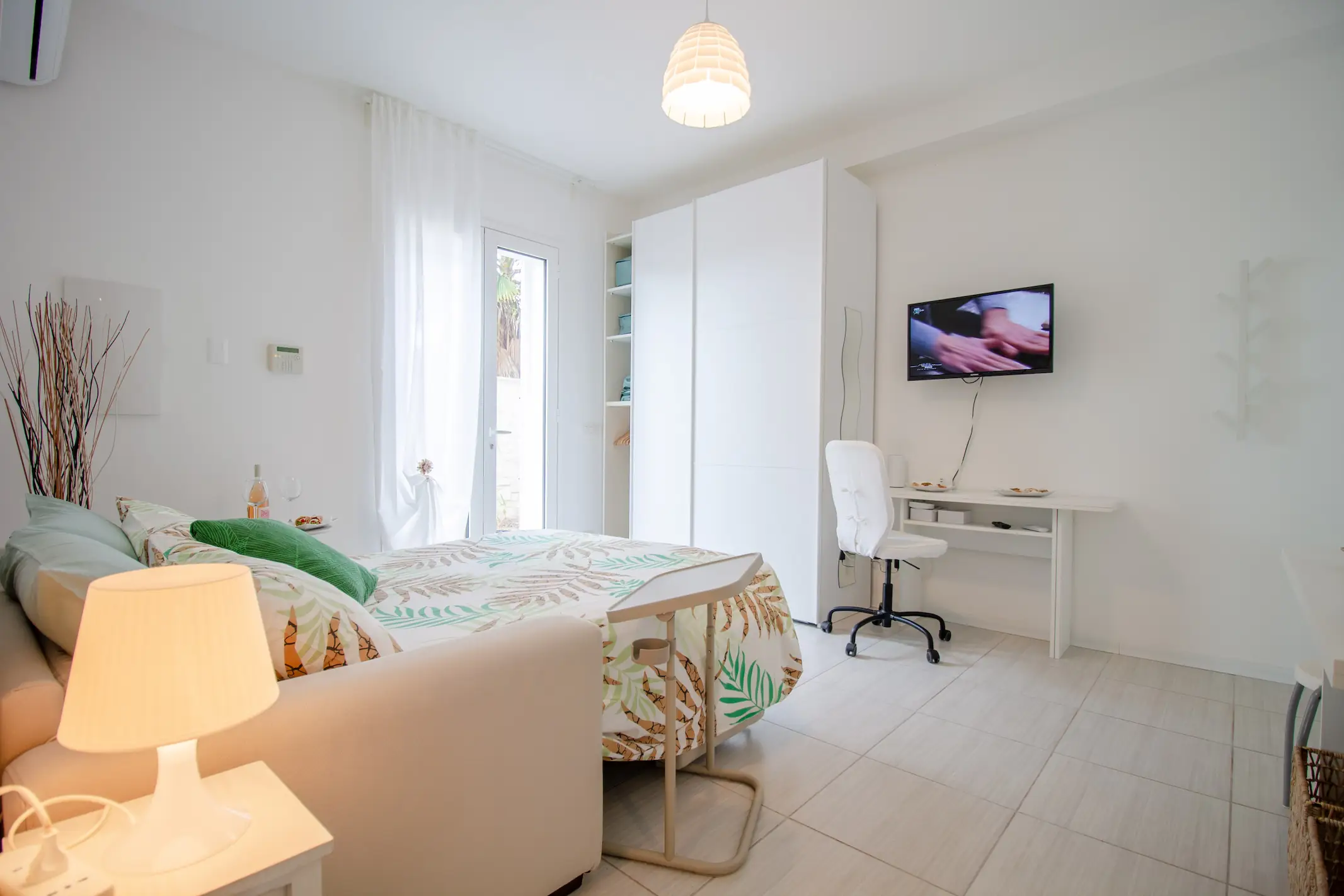 Tutto l’appartamento è pervaso dalla luce naturale e dalla brezza del giardino, creando un ambiente fresco, rilassante e perfetto per ogni momento della giornata.