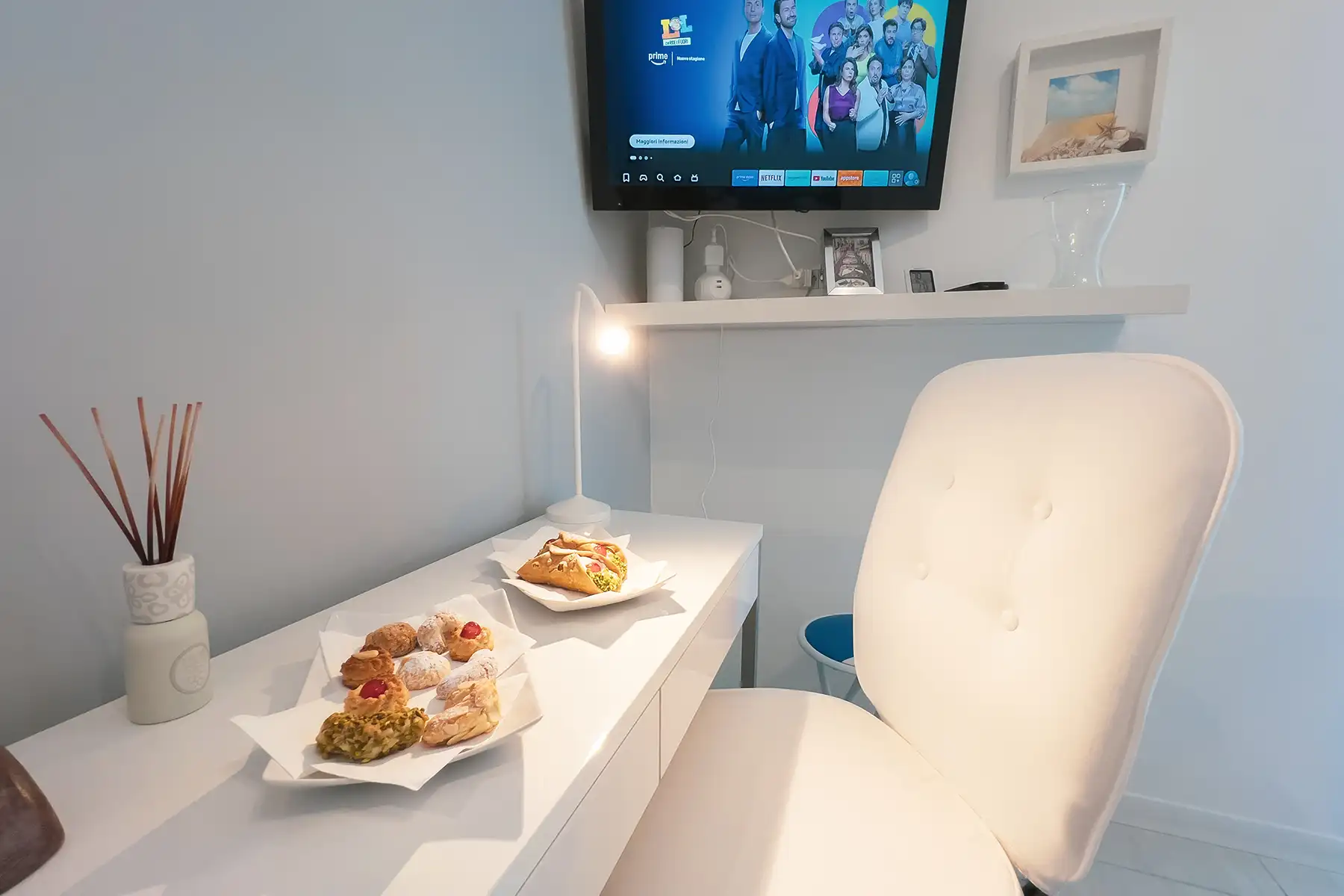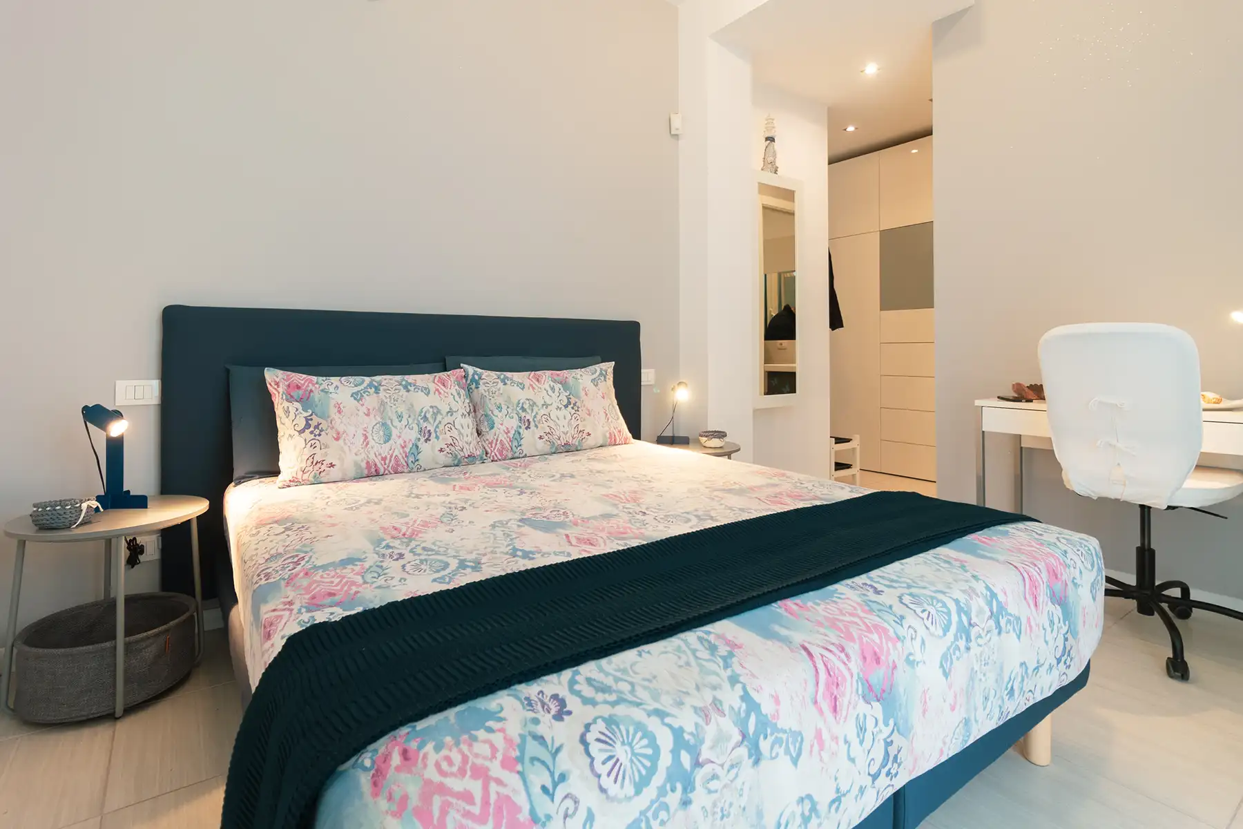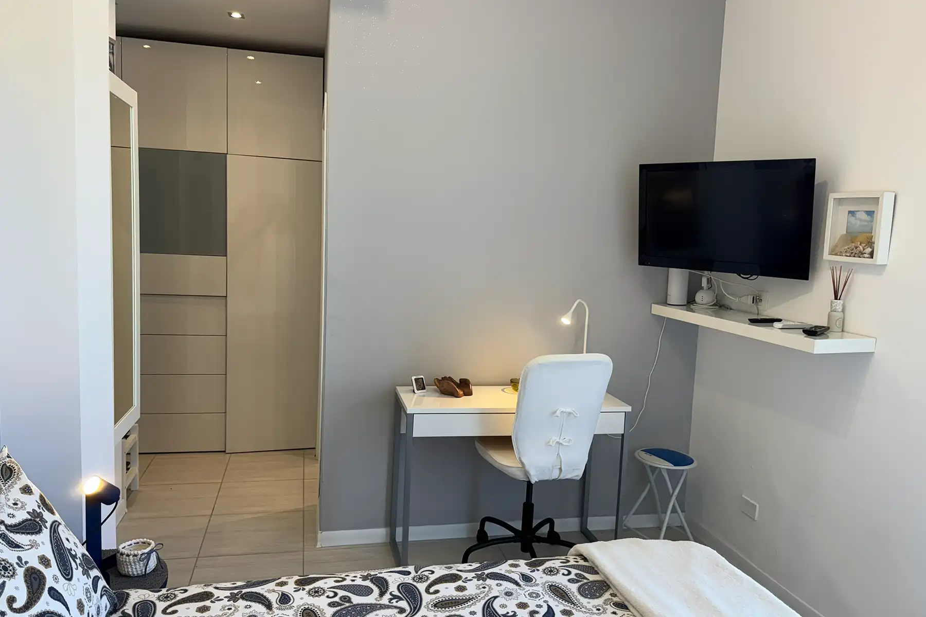 Questa camera matrimoniale è dotata di sommier e materasso memory Dorelan, doppia scelta di cuscini, topper, lenzuola coordinate e asciugamani profumati. Completano il comfort un bagno privato con set cortesia, minifrigo, asciugacapelli, Wi-Fi, smart TV con Netflix e Prime Video.