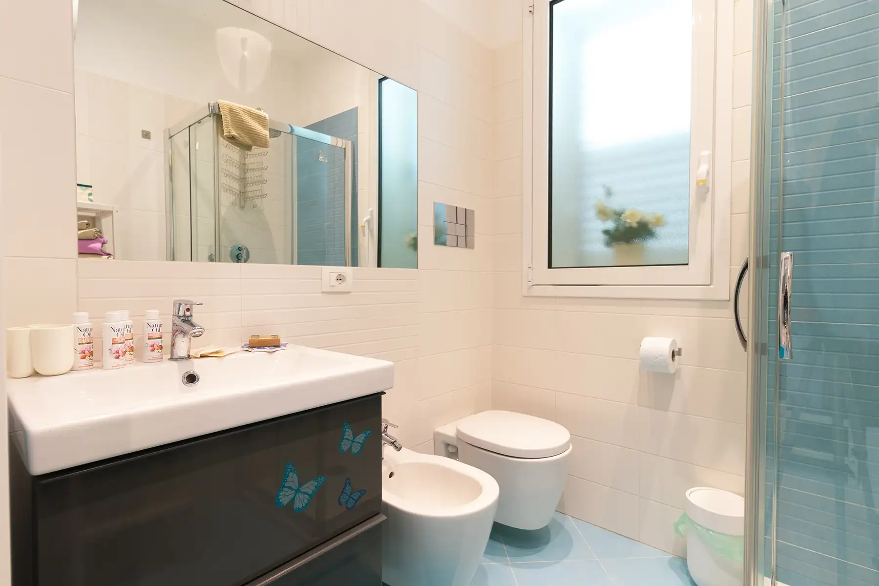 In tutte le camere e nell’appartamento è possibile, su richiesta, separare il letto matrimoniale in 2 letti singoli